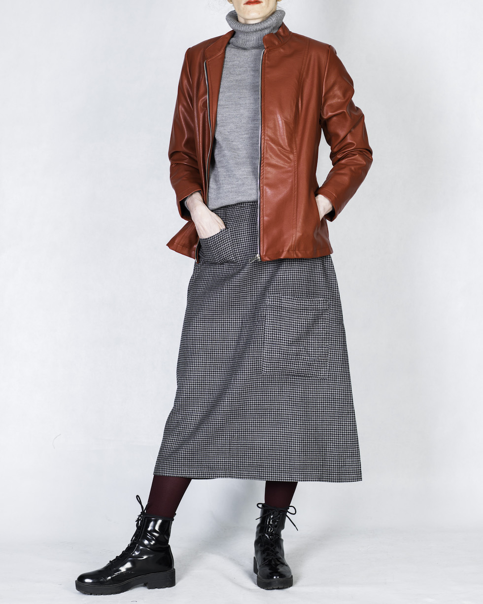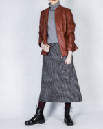 توضیحات: جلوی کمر پارچه – پشت کمر کش – قد 80 – پشت چاک – 2 جیب نامتقارن در جلو