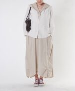 کت دنیس از پارچهی لینن برفکدار*، خنک و مناسب فصول گرم سال است. کت دنیس را میتوانید با پیراهن الا یا شلوار بیل ست کنید.