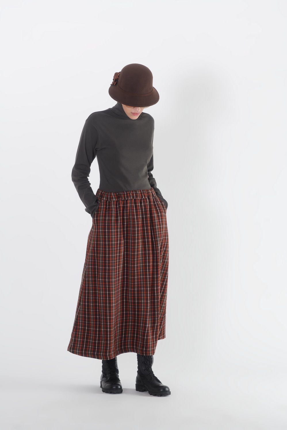 [space_20]دامن گرترود بلند و طراحی آن ساده است. این دامن با پارچهی لینن در دو رنگ سرمهای و مشکی دوخته شده است که موجب میشود در تمام فصلها بتوان از آن در استایل خود استفاده کنید و به آسانی با لباسهای تابستانی و یا زمستانی هماهنگش کنید. دامن گرترود با پارچهی پشمی چهارخانه، انتخاب جذابی برای هوای سرد زمستان است. این دامن را میتوانید به سادگی با کتهای مودیلیانی و اولگا ترکیب کنید. همینطور یک یقه اسکی «اورسایز» بر روی این دامن حالتی امروزی به سبک لباس پوشیدنتان میبخشد. دامن گرترود با پارچهی پشمی چهارخانه را همراه یک بارانی یا ژاکتی کوتاه برای یک پیکنیک در یک روز پاییزی در نظر داشته باشید.